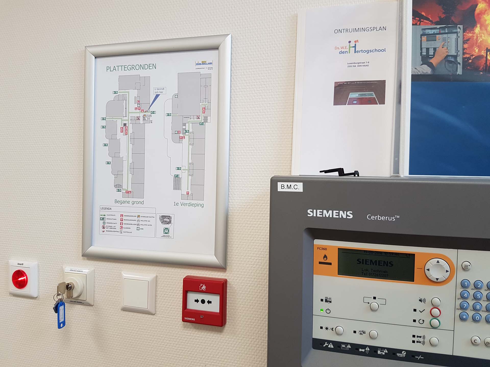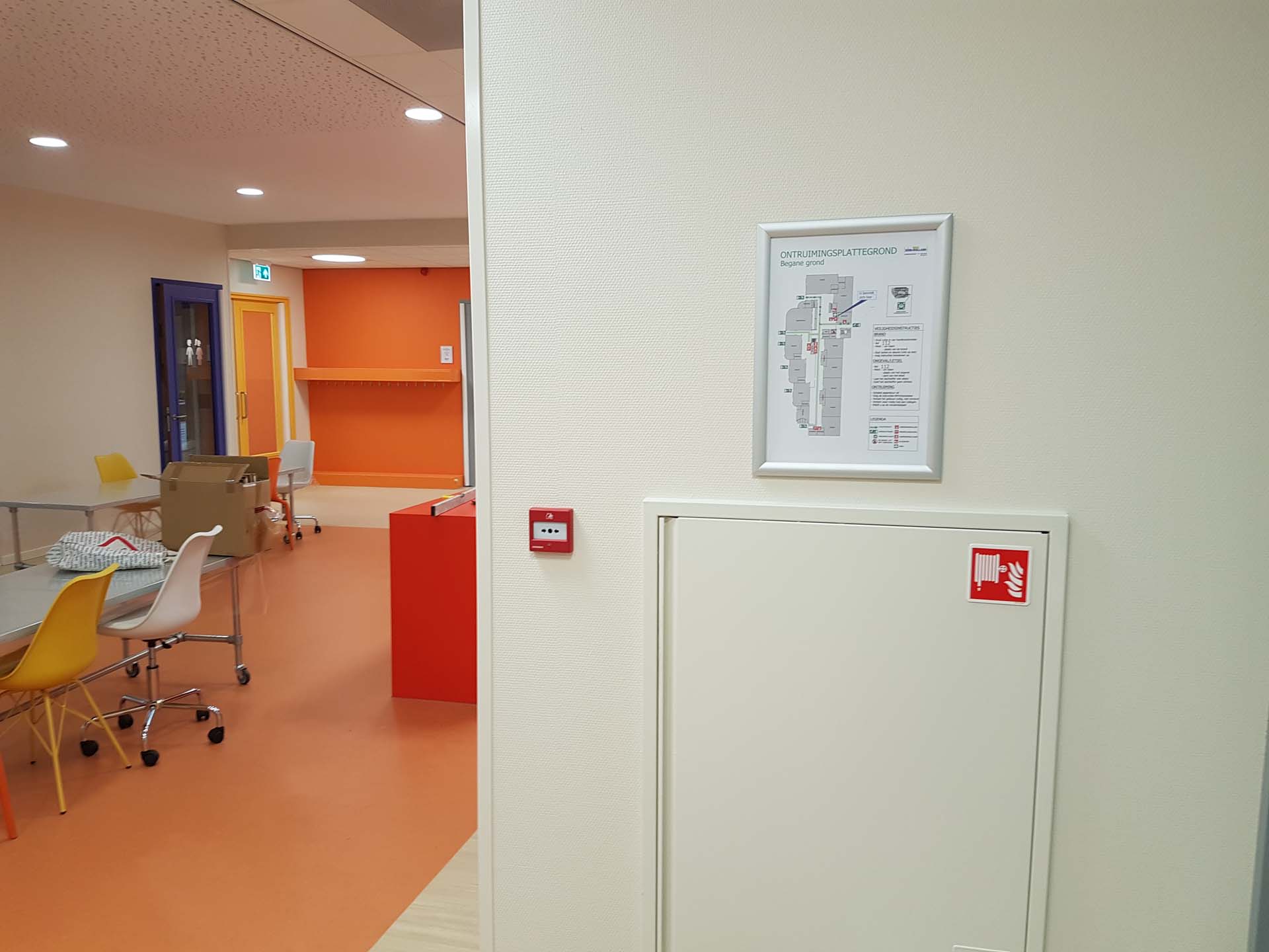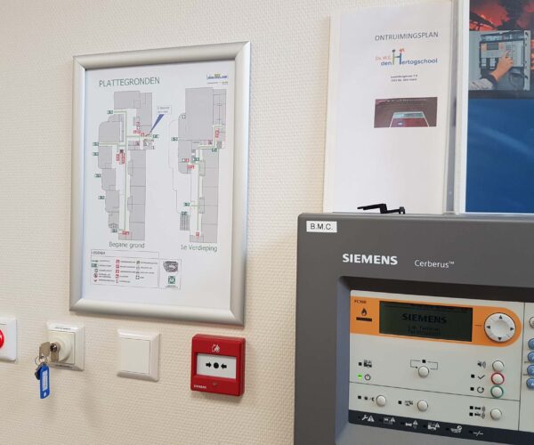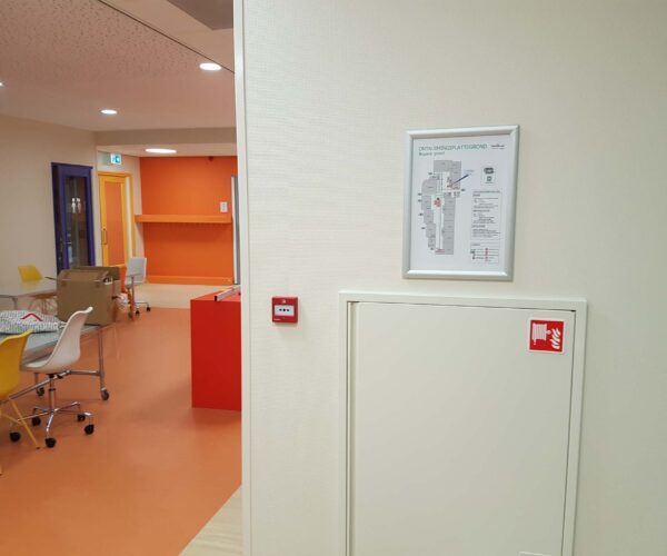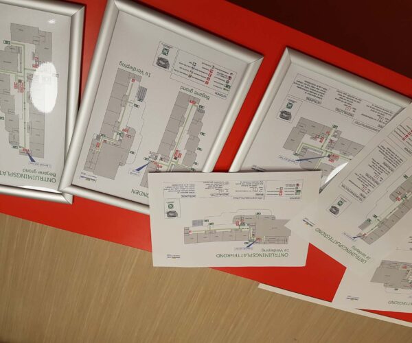 Hieronder vindt u een impressie hoe wij een school, waarvoor we al jaren de BHV organiseren, hebben mogen helpen met het vervaardigen en ophangen van hun ontruimingsplan en plattegronden voor in hun nieuwe schoolgebouw.